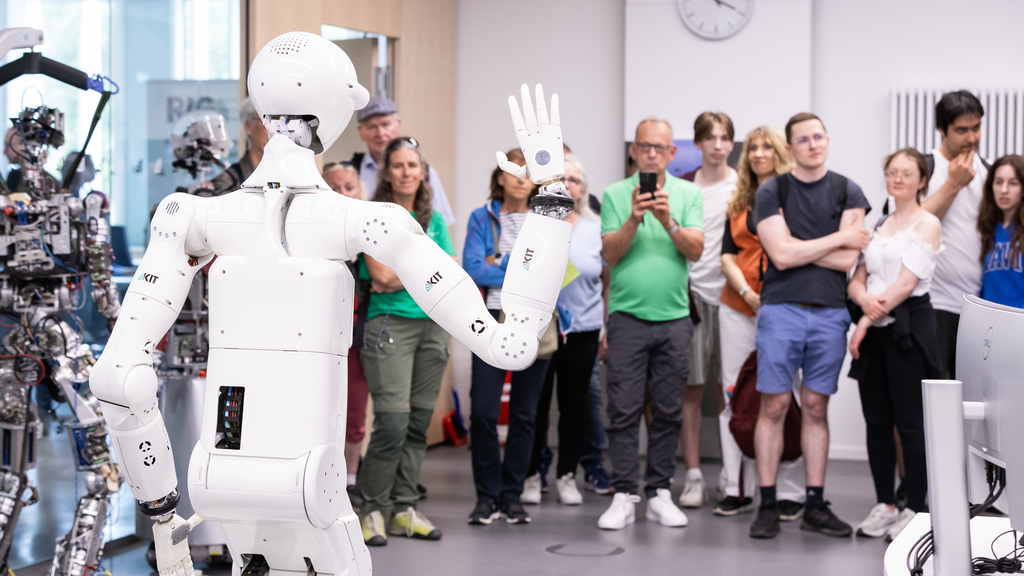 Künstliche Intelligenz, die den Menschen in den Mittelpunkt stellt: Vier Professoren des KIT zeigen am 08. Oktober 2025 in Vorträgen und interaktiven Demonstrationen das breite Spektrum moderner KI-Forschung – von humanoiden Robotern, die durch Beobachtung des Menschen lernen, über barrierefreie und inklusive Technologien bis hin zur KI-gestützten Sprachtechnologie und Materialentdeckung. Das KIT-Zentrum "Information · Systems · Technologies" (KCIST) und das Robotics Institute Germany (RIG) präsentieren wegweisende Forschung an der Schnittstelle von Robotik und KI, die bereits heute unseren Alltag prägt und die Zukunft gestaltet.